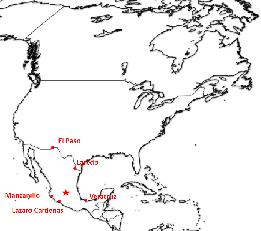 - LAZARO CARDENAS MX 607km (8 HRS)